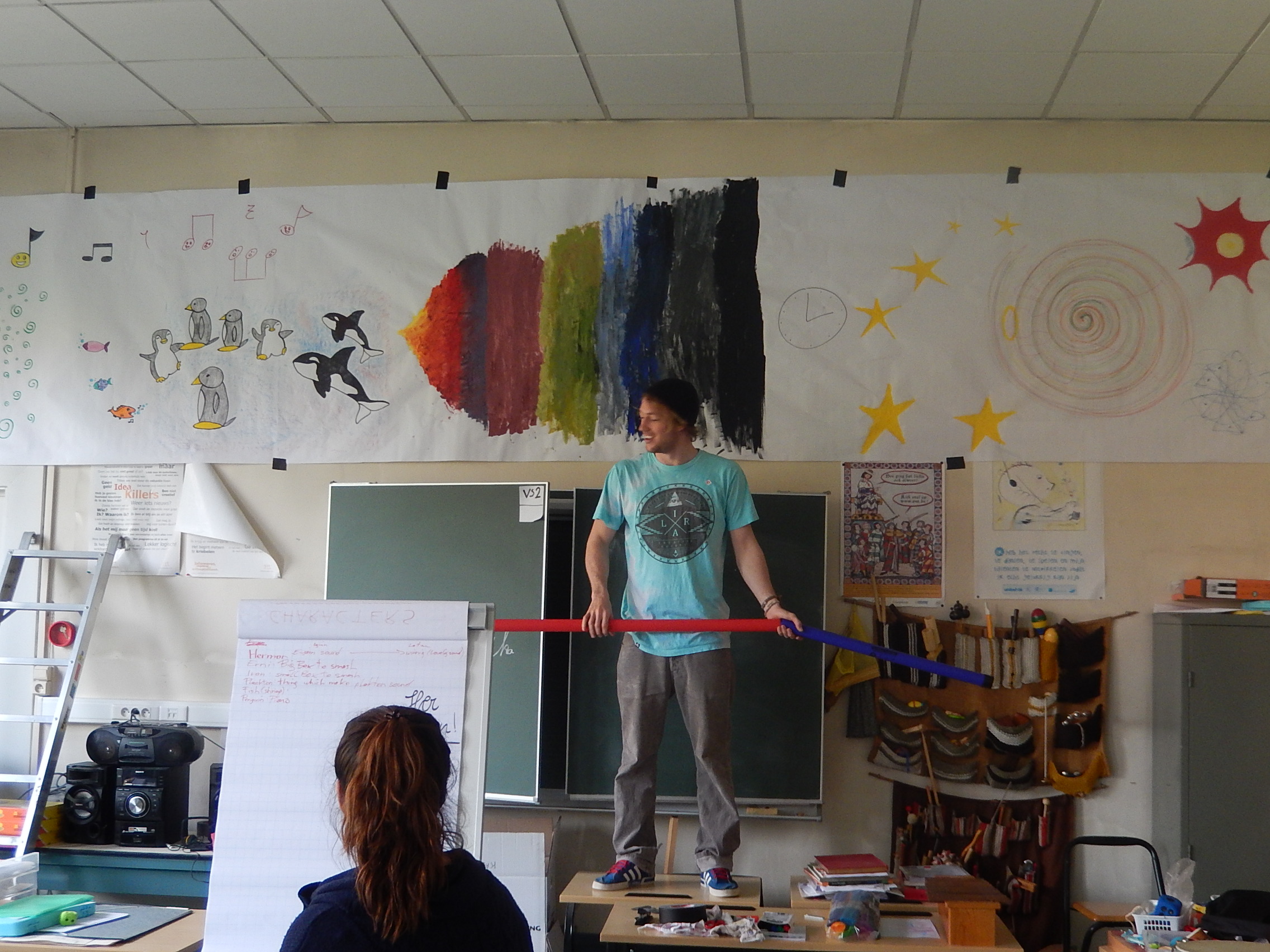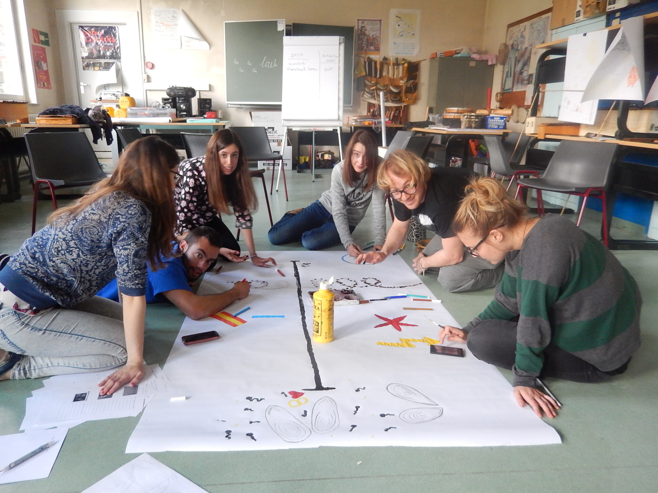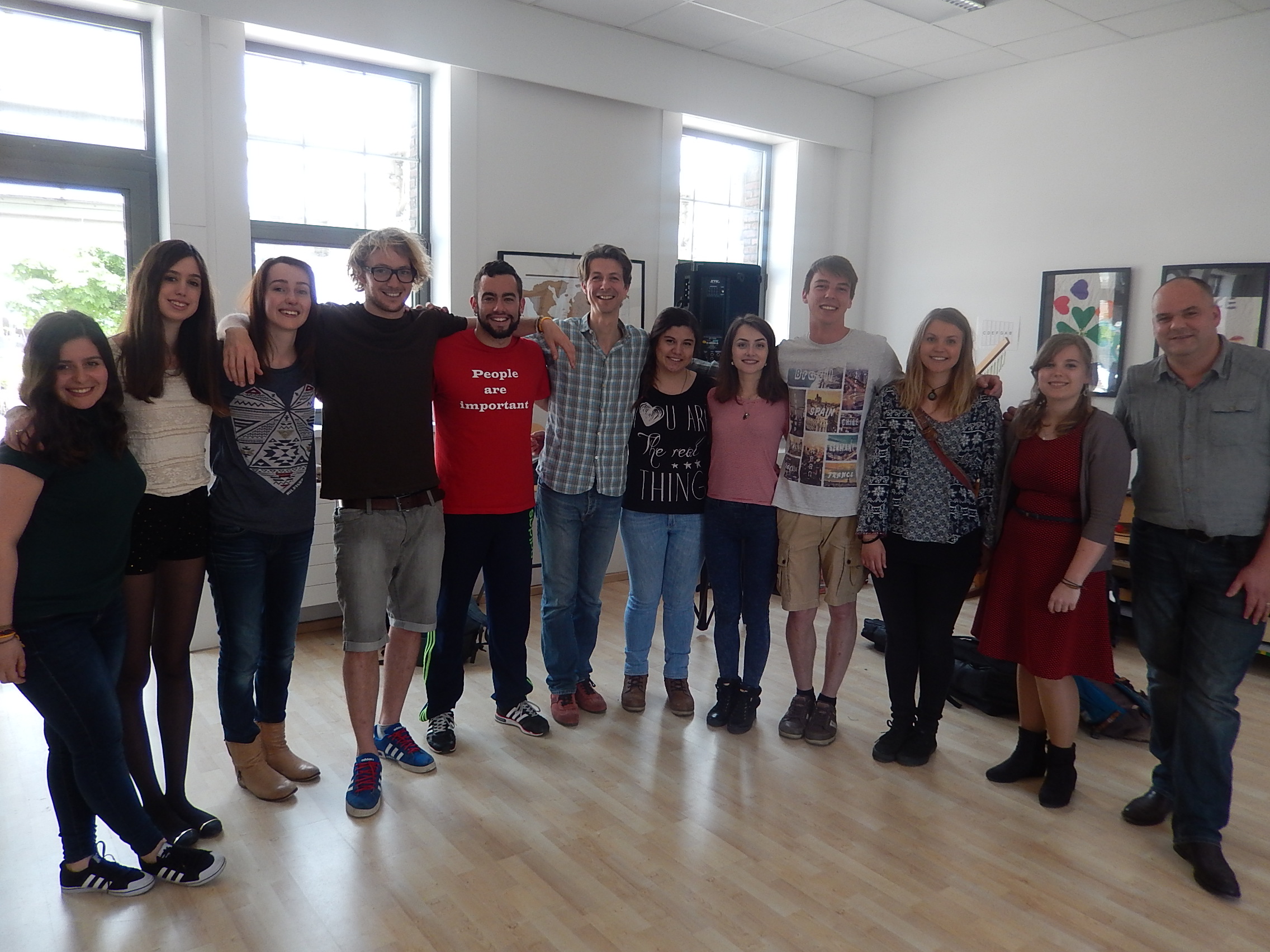 Tom van den Broek, Tim Acke and Luc Celis, from the AP College in Belgium, attended the CREAT-IT "WASO" summer school in Norway (2014). AP College is now one of the first in Europe to include the Write a Science Opera (WASO) methodology as part of the curriculum which their students of education may choose to attend. In these pictures, exchange students from five countries, who were visiting AP College, took a one-week WASO course with Mr. Van den Broek. The Scientific information for this workshop was provided by a Belgian Biologist. The event was made possible through the efforts of AP's International Coordinator, Mr. Geert Marrin.